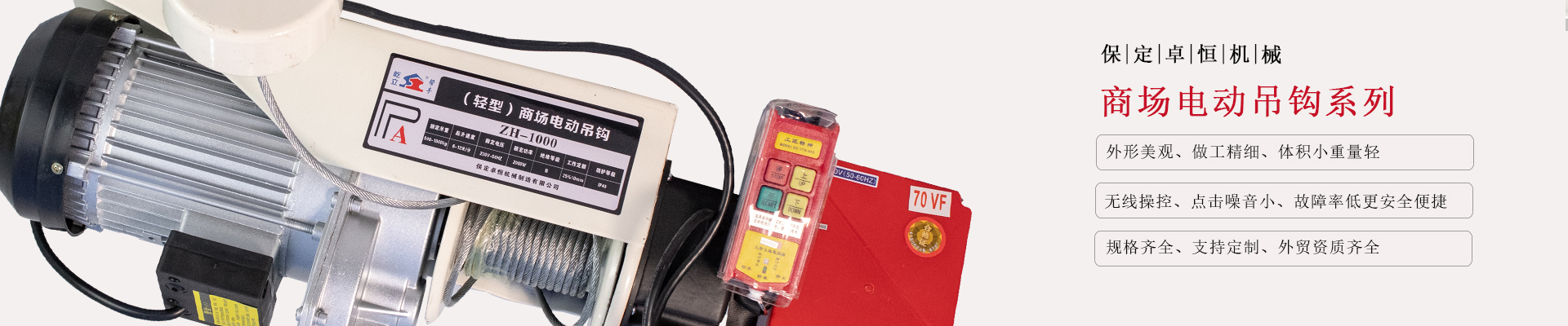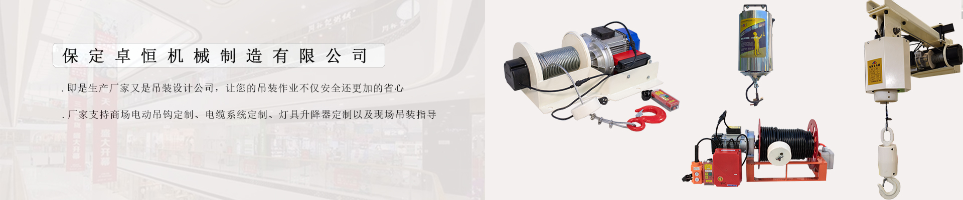 輕型商場(chǎng)電動(dòng)吊鉤在商場(chǎng)中庭場(chǎng)景中,憑借自身獨(dú)特的設(shè)計(jì)與性能特點(diǎn),能為中庭的吊裝作業(yè)提供靈活高效的解決方案。商場(chǎng)中庭作為人流密集的公共區(qū)域,對(duì)吊裝設(shè)備的安全性、便捷性與空間適配性有著較高要求,輕型電動(dòng)吊鉤恰好能滿(mǎn)足這些需求。